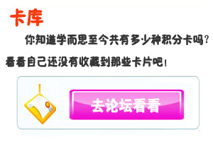 | 導(dǎo)語:學(xué)而思積分卡活動(dòng)已進(jìn)行一周年;在這過去的一年里,我們?yōu)榱耸种谐恋榈榈目ㄆ隊(duì)繅?mèng)縈,為了卡面上的謎題而苦思冥想,為了那份精美的禮物而努力學(xué)習(xí)。這張小小的卡片,不知不覺中已經(jīng)伴我們走過了將近一年的時(shí)光,也給我們留下了太多太多美好的回憶和無限的憧憬…… |